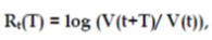мұнда V(t+T) және V(t) капитал портфелінің t+T және t уақытындағы мәні. Басқа сөзбен айтқанда, V(t+T) = V(t) * exp(Rt(T)).