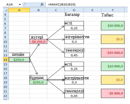 Біз жүгеріні таңдағанда фермер 8250 долларды жоғалтады, ал бұршақты таңдағанда 250 доллар табамыз. Ең үлкенін таңдаңыз.