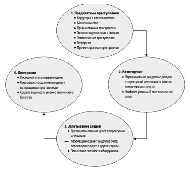 Полный упрощенный цикл отмывания доходов от коррупции представлен на рисунке 6.3.1.