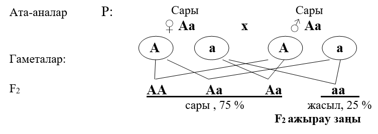 2-сурет – Бұршақ тұқымдарының түсінің тұқым қуалауы, ажырау заңы