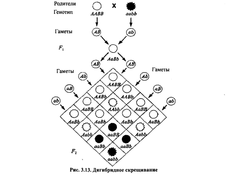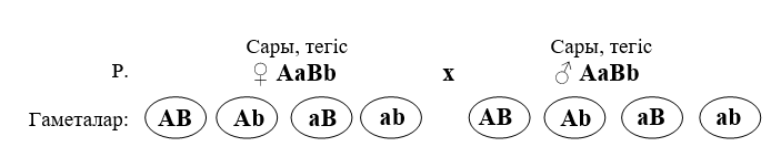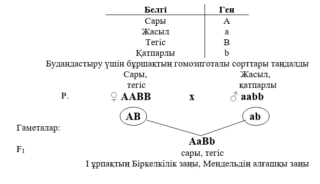Будандастыру үшін ата-аналық пішіндердің контрастылы белгілерінің екі жұбы бойынша гомозиготалылар алынды: аналық өсімдіктің генотипі ААВВ, ал аталықтікі – aabb (7-сурет).