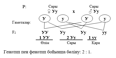 Екі сары жеке ағза будандастырылды. F1-де жүнінің түсі бойынша қандай бөлініс болады деп күтілуде?