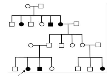 Пробанд – дені сау еркек, дені сау әйелге үйленгенде алты баласы дүниеге келген – үш ұл және үш қыз. Екі қыз фенилкетонуриямен ауырады, олардың бірі ерте қайтыс болды. Әйелі сау, ал оның ата-анасы туралы ақпарат жоқ. Пробандтың әпкесі, оның ата-анасы, әкесі жағынан атасы мен әжесі сау.