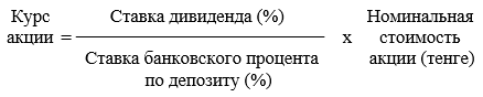 где У - доход по акции (дивиденд в денежном выражении), тенге;