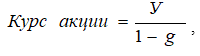 Если мы имеем дело с акцией, дивиденды по которой имеют тенденцию к устойчивому росту по фиксированной ставке в неопределенном будущем, то расчет курсовой стоимости такой акции можно осуществить следующим образом: