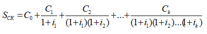 Расчет приведенных затрат Sc для разных лет работы инвестиционного проекта осуществляется по формулам: