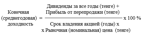 При определении конечной доходности учитывается дополнительный доход, который инвестор может получить, только реализовав акции на вторичном рынке и сыграв на разнице в цене.