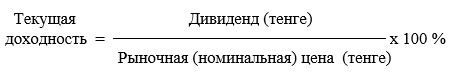 Доход по акции выплачивается в виде дивиденда. Дивиденд по простым акциям - величина нефиксированная. Его размер зависит от прибыли, которую получает АО и решения общего собрания акционеров. Дивиденды выплачиваются в национальной валюте (например, в тенге на одну акцию).