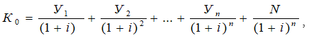 N - сумма, возвращаемая инвестору (например, номинальная стоимость облигации с купонами), тенге;