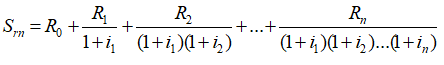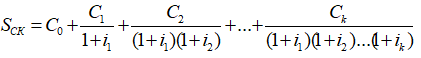 Необходимо отметить, что в расчете рентабельности инвестиционного проекта участвуют не отдельно взятые значения дохода и расхода в определенный момент времени, а суммы доходов Srn и расходов Sck, приведенные к одному сроку.