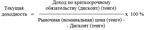 При определении текущей доходности предполагается, что прибыль инвестора формирует только текущий доход (доход, начисляемый по отдельным периодам: за месяц, квартал, год). Поэтому в качестве текущего дохода чаще всего рассматривают доход, выплачиваемый только по купонам. Допускается также рассмотрение в качестве текущего дохода выплат в виде дисконта, если бескупонное долговое обязательство эмитировано на срок не более одного года.