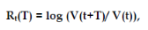 мұнда V(t+T) және V(t) капитал портфелінің t+T және t уақытындағы мәні. Басқа сөзбен айтқанда, V(t+T) = V(t) * exp(Rt(T)).