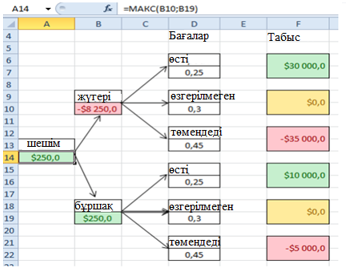 Біз жүгеріні таңдағанда фермер 8250 долларды жоғалтады, ал бұршақты таңдағанда 250 доллар табамыз. Ең үлкенін таңдаңыз.