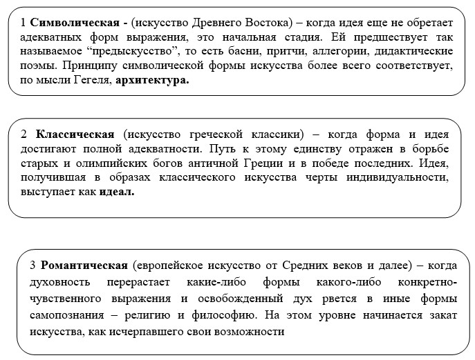 Гегель выделяет три стадии развития искусства