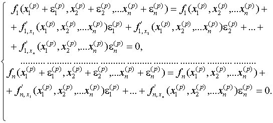Предположим, что найдено р-ое приближение xp = (x1(p), x2(p) , ..., xn(p)) одного из изолированных корней x = (x1, x2, x3, ..., xn) векторного уравнения (2). Тогда точный корень уравнения (2) можно представить в виде