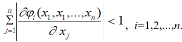 2) начальное xi(0), i=1,2,…n и все вычисляемые приближения к решению системы находятся в этой окрестности;