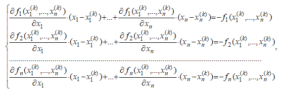При использовании метода Ньютона для решения системы придется последовательно формировать и решать системы линейных уравнений: