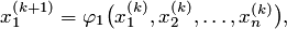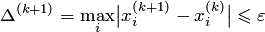 Вычислить x(k+1)по формулам где прямоугольниками отмечены значения, которые берутся из предшествующих уравнений на текущей итерации.
