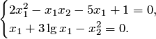 Пример. Найти корни нелинейной системы уравнений, расположенные в первом квадранте, методом простых итераций с точностью ε = 0,001