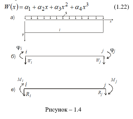 В качестве примера рассмотрим задачу о плоском изгибе призматического стержня (рисунок 1.4, а). Дифференциальные уравнения изогнутой оси балки содержат четвертую производную от функции прогиба :