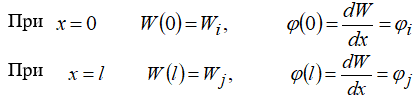 Wj, φj– вертикальное перемещение и угол поворота узла j.