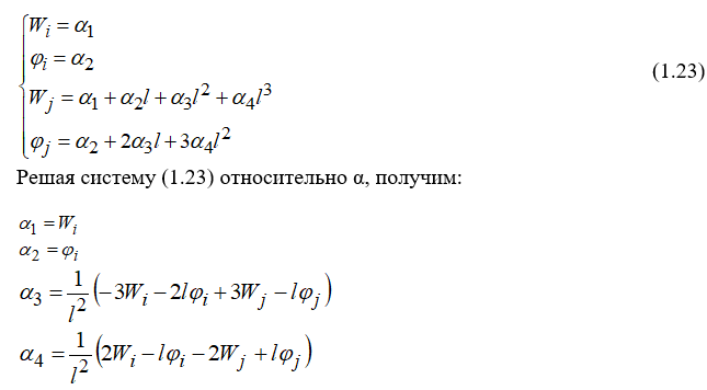 Для определения неизвестных коэффициентов α уравнения (1.22) выразим их через значения степеней свободы (Wi,j, φi,j). Запишем граничные условия задачи: