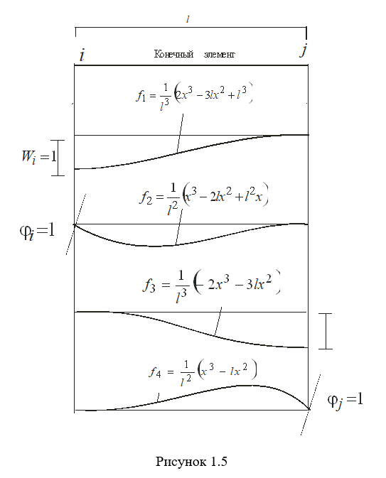 Функции (1.24) описывают распределение перемещений по области изгибаемой балки, когда одно из перемещений равно единице, а остальные равны нулю (рисунок 1.5).