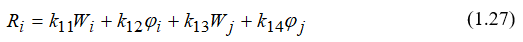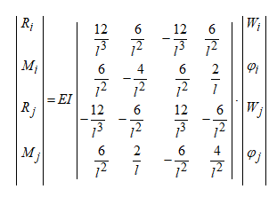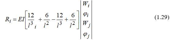 Значения коэффициентов можно получить различными методами сопротивления материалов или строительной механики стержневых систем. Например, для определения Rj надо придать единичные значения последовательно перемещениям Wi,j, φi,j и суммировать возникшие при этом реакции по направлению