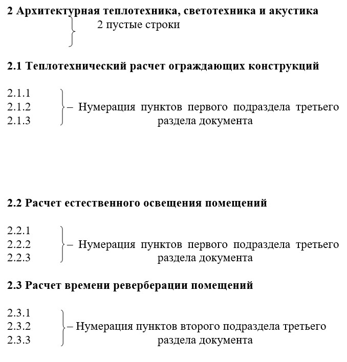 Если документ имеет подразделы, то нумерация пунктов должна быть в пределах подраздела, и номер пункта должен состоять из номеров раздела, подраздела и пункта, разделённых точками, например: