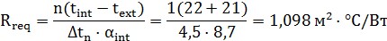 Определение минимально допустимого (требуемого) термического сопротивления теплоизоляционного материала: