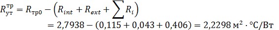 - сумма термических сопротивлений всех слоев стены без слоя утеплителя, определенных с учетом коэффициентов теплопроводности материалов, м2·°С/Вт.