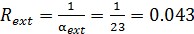 - сопротивление теплообмену на наружной поверхности, αext принимается по таблице 14 для наружных стен;
