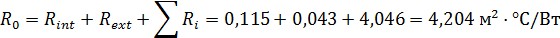 4 слой (штукатурка): R4 = 0,02/0,87 = 0,023 м2·ºС/Вт