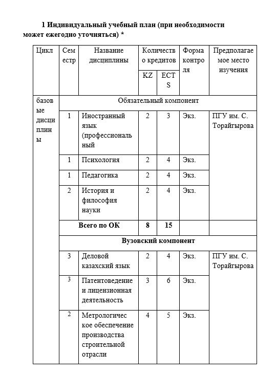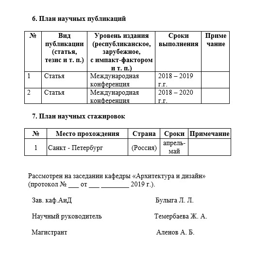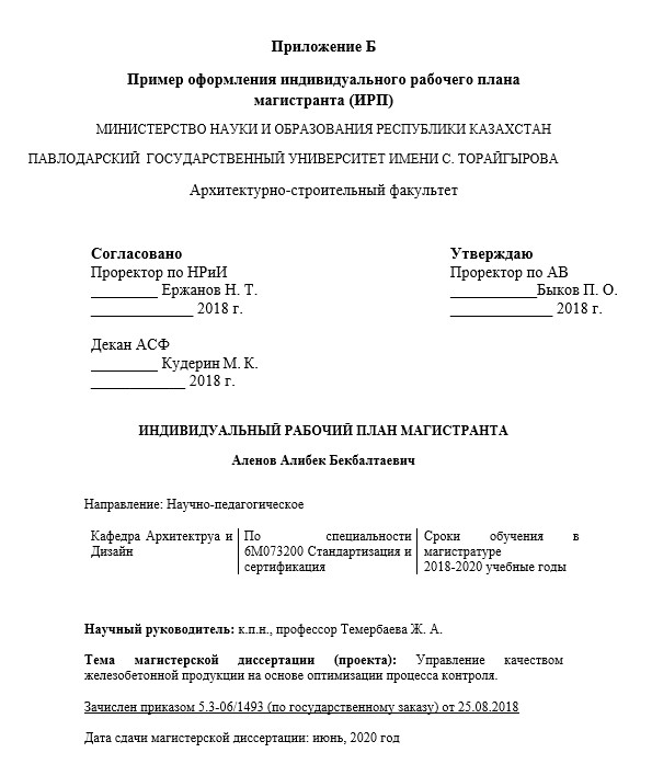 Приложение Б Пример оформления индивидуального рабочего плана магистранта (ИРП)