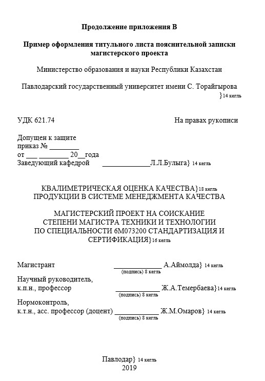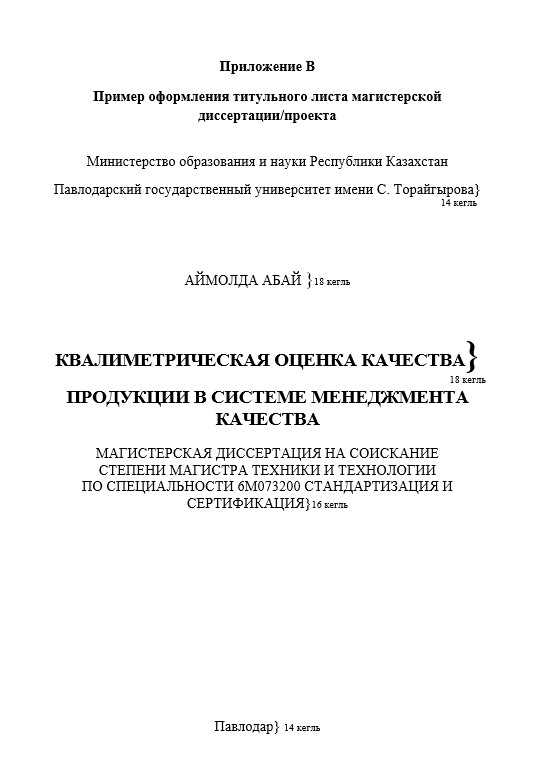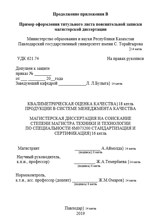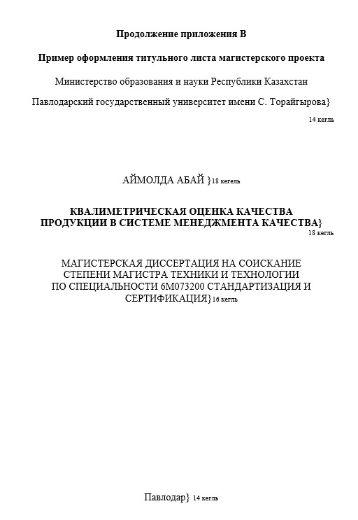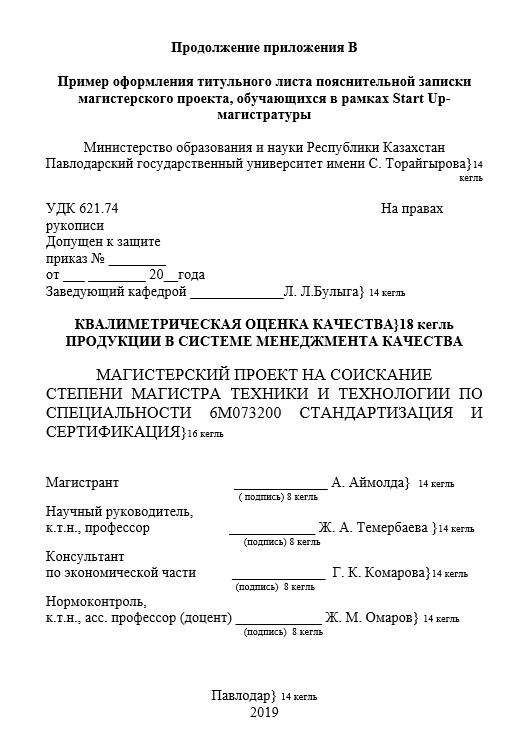 Приложение В Пример оформления титульного листа магистерской диссертации / проекта