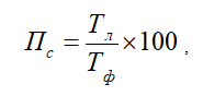 Общие размеры потерь рабочего времени По в процентах к отработанному времени определяются по формуле: