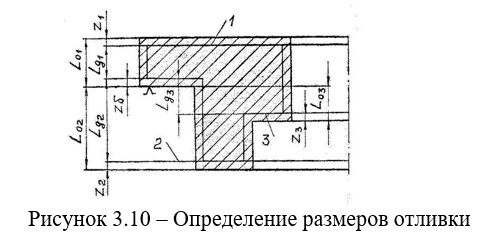 С учетом положения отливки в форме на поверхность «А» скорректируйте табличное значение ряда припусков. По приложению В определите общий припуск на сторону на каждую обрабатываемую поверхность. Входными параметрами при этом являются общий допуск элемента поверхности отливки ТО.ОБЩ, ряд припуска (РП) и вид наиболее точной механической обработки. Руководствуясь методическими указаниями (рисунок 3.10), рассчитайте номинальные размеры отливки и проставьте их допускаемые отклонения;