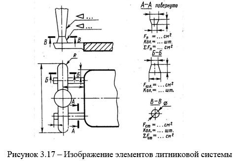 Изобразите литниковую систему. Вычертите на свободном поле чертежа сечения всех элементов литниковой системы в масштабе 1:1, проставьте размеры; площади сечений не штрихуют. Наружные контуры отливки и литниковую систему обведите красным цветом.