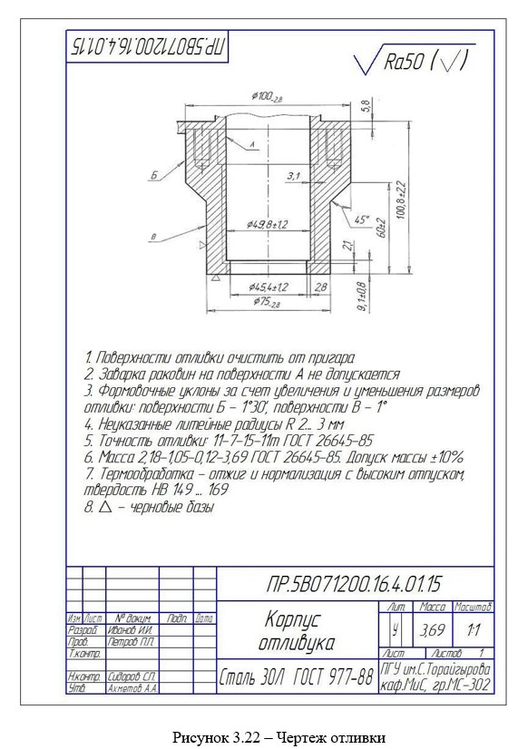 Оформите чертѐж отливки (рисунок 3.22) и сформулируйте технические требования на еѐ изготовление, руководствуясь таблицей 3.11.