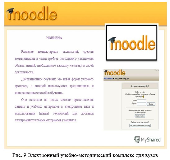 9) Электронный учебно-методический комплекс – это индивидуализированная совокупность электронных материалов, полностью обеспечивающая учебную деятельность. В таком комплексе обучение производится полностью автономно без помощи преподавателя. Сам комплекс подстраивается под темп и вид подачи материала и предоставляет возможность учащемуся осваивать учебную дисциплину максимально индивидуализировано. Подобного рода комплексы активно используются учебными заведениями различного уровня образования (Рис. 9).