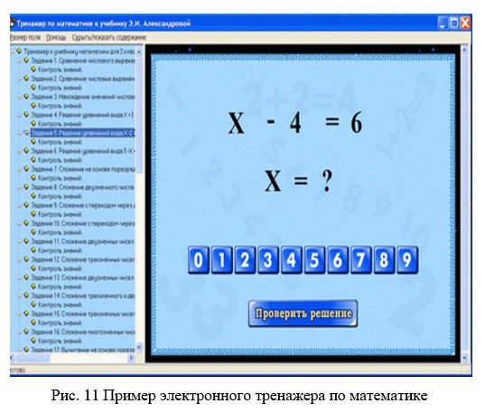 11) Электронный тренажер – это программный продукт, предназначенный для усвоения и закрепления практических умений (Рис. 11). На электронном тренажере можно отработать умения конкретных процессов, закрепить на практике теоретический материал, погрузить учащегося в предметную область, имитировать реальную производственную ситуацию.