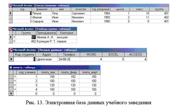 13) Электронные базы данных учебного назначения – это упорядоченные данные, предназначенные для использования в учебном процессе (Рис. 13). Подобные базы данных предназначены для накопления информации по предмету с целью ее дальнейшего использования для обучения.