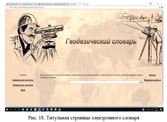 Для улучшения понимания терминов, которых очень много в учебных пособиях, может быть создан «Электронный терминологический словарь». Это пособие должно быть снабжено удобной поисковой системой, наличие гиперссылок в тексте определений делает данный продукт специализированным гипертекстовым словарем. Кроме того, словарь следует снабдить алфавитным и предметным указателями для удобства работы в терминах конкретной тематической группы (Рис. 18).