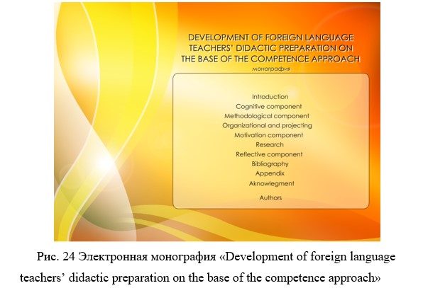 Электронная коллективная монография на английском языке «Development of foreign language teachers’ didactic preparation on the base of the competence approach» совместно с учёными Казахстана и США может быть использована в практической деятельности учреждений системы повышения квалификации педагогов, высших профессиональных учебных заведениях, методических объединений учителей английского языка и самообразования