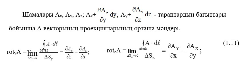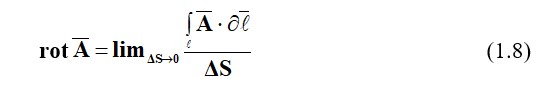 Кейбір вектордың роторы А вектордың айналымының қатынасы лимитіне тең А ауданға ΔS интеграцияның контуры ұмтылыспен шектелген .