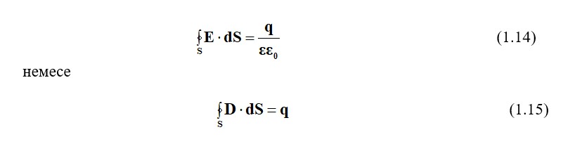 Теорема бойынша: электр өрісінің беріктігі векторының ағыны Е жабық беті арқылы S біртекті және изотропты ортада беті шектелген кеңістіктің көлеміне қойылған электрлік зарядтың қатынасына тең S, абсолютті диэлектрик өтімділігімен εε0, т.б:
