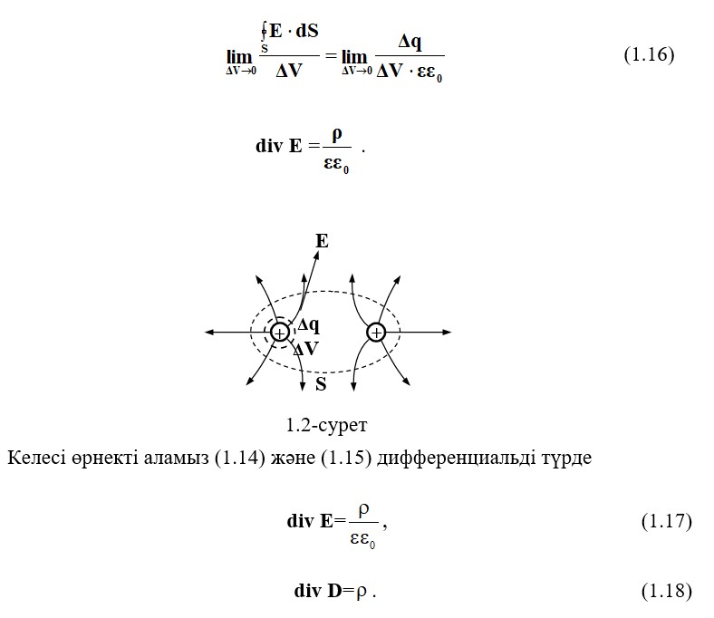 (1.17) –Гаусс теоремасы, (1.18) – Максвелл постулаты дифференциальді түрде.