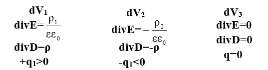 Есептерді шешу барысында электрлік өрістің параметрлерін анықтау нүктенің орналасуына байланысты қарастырылады (мысалы, E, D, H, B, φ, ε, ε0, μ0).