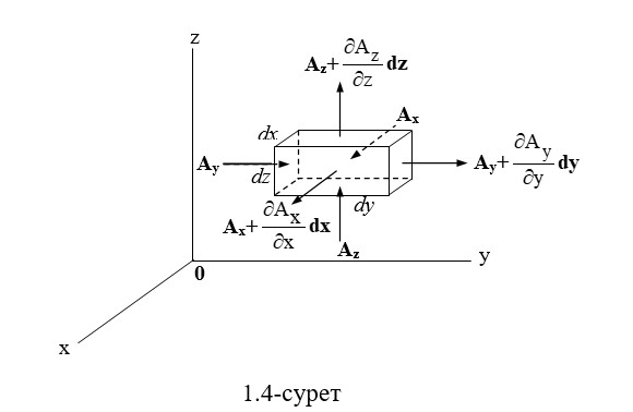 1.5 Тіктөртбұрышты координат жүйесіндегі Гаусс теоремасы және Максвелл постулаты