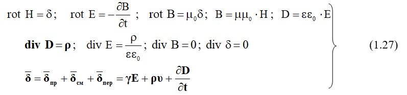 Осы өткізгіш және ток өткізбейтін ортада кейбір құрамдас теңдеулер (1.27) болады соны ескеру керек.